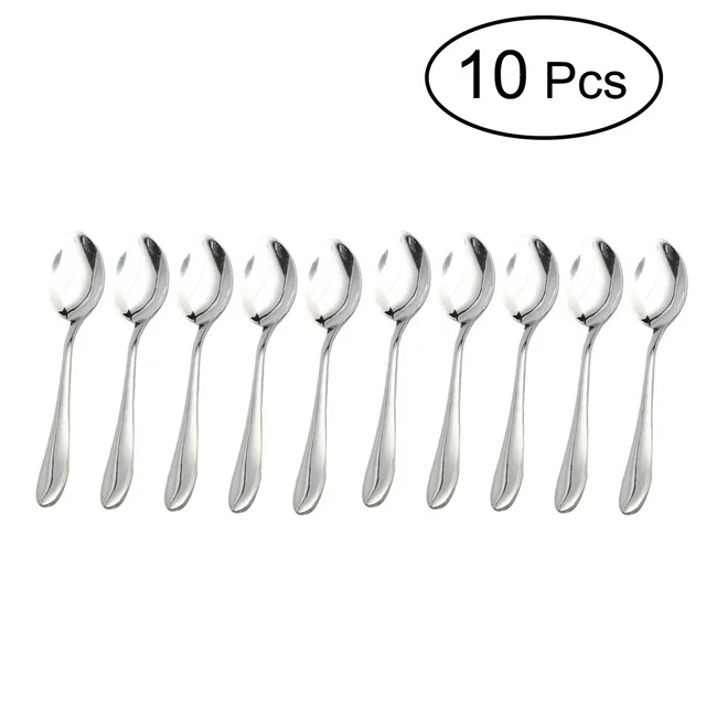 Material: Stainless Steel Handle Size:10.5 x 1.5cm / 4" x 0.6"(L*W) Spoon Tip Size: 4.5 x 3.3cm/1.7" x 1.3"(L*W) Total Length: 15.3cm/6" Package Content: 10 x Dinner Spoons